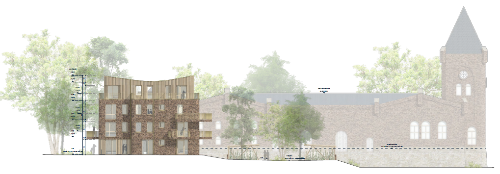 Die EUGEBAU wird mit dem Bau des Haus B nordöstlich des Alten Schlachthofs beginnen. Es handelt sich um ein Mehrfamilienhaus mit elf Wohnungen. Die Gesamtwohnfläche von ca. 660 m² verteilt sich auf drei Vollgeschosse und ein Staffelgeschoss. Jede Wohnung verfügt über einen Balkon oder eine Terrasse. Neun Wohnungen werden öffentlich gefördert, zwei Wohnungen freifinanziert. Die Wohnungen weisen jeweils eine Wohnfläche von rund 58 m² bis 62 m² auf. Zwischen dem Gebäude und dem nebenliegenden Haus A, welches zu einem späteren Zeitpunkt realisiert wird, entsteht eine PV-Carportanlage. Der Bauantrag wurde im November 2025 eingereicht. Bevor mit dem Neubau begonnen werden kann, muss die Erftstraße neu erschlossen und ein Teil des Alten Schlachthofs zurückgebaut werden. Der Baubeginn ist deshalb Mitte 2026 zu erwarten Das Gebäude soll Anfang 2028 fertiggestellt sein.