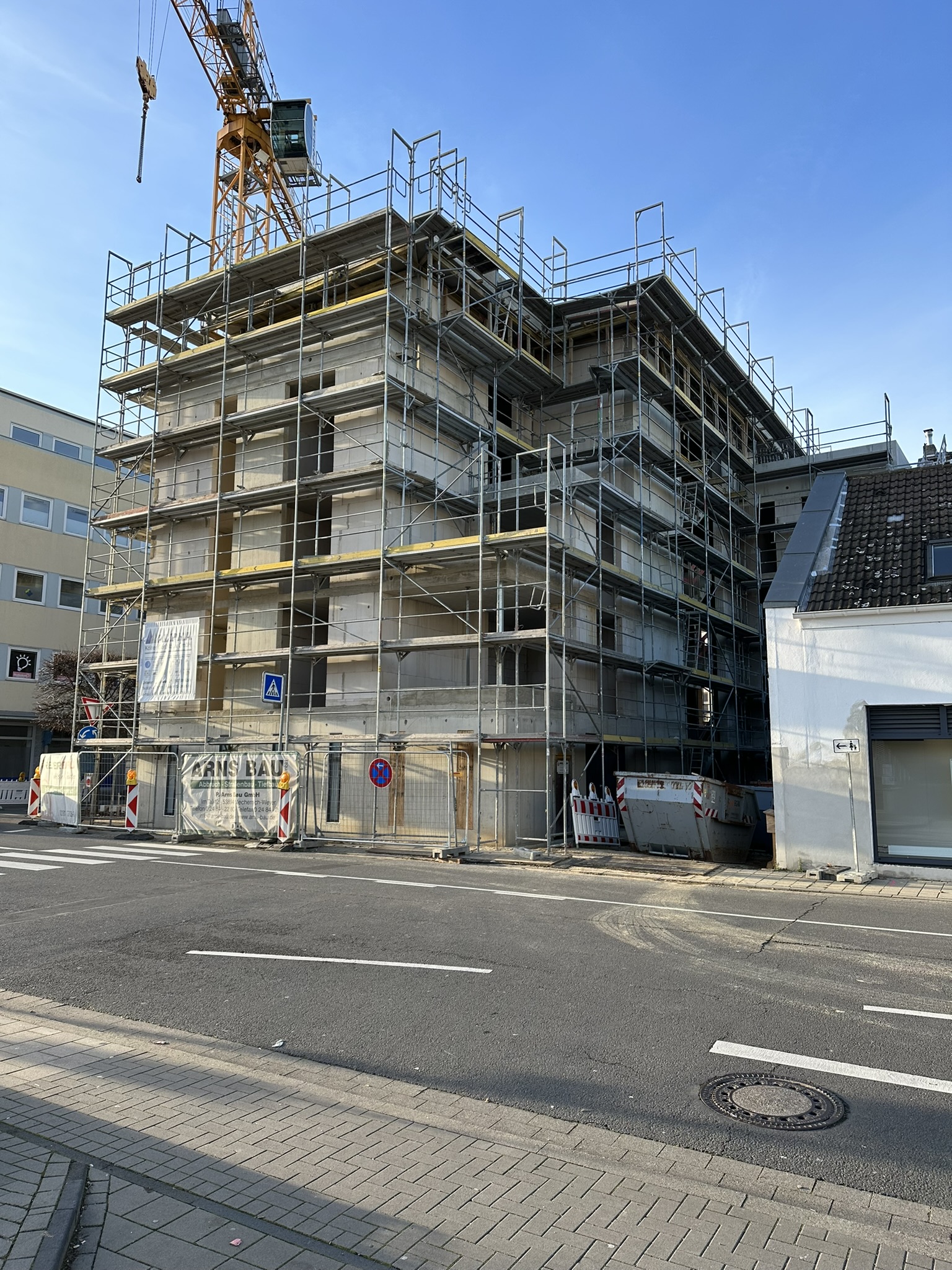Auf dem Grundstück Wilhelmstraße/ Veybachstraße/ Hochstraße in Euskirchen baut die EUGEBAU ein Mehrfamilienhaus mit 18 öffentlich geförderten Wohnungen . Ein großzügiger Innenhof an der Veybachstraße bietet einen geschützten Zugang zum Gebäude. Mit fünf Geschossen inklusive Staffelgeschoss verfügt es über einen Wohnfläche von 1.000 m2. Die Wohnungsgrößen variieren zwischen 40 m² bis 92 m². Als zukünftige Hochwasserschutzmaßnahme wird auf ein Untergeschoss verzichtet. Das gesamte Erdgeschoss wird Empfangsbereich, Abstellfläche und Kellerersatz. Parkplätze stehen mit dem gegenüberliegenden E-Parkhaus ausreichend zur Verfügung. Im Juni 2023 wurde mit dem Bau des Gebäudes begonnen. DIe Fertigstellung sowie die Bezugsfertigkeit erfolgte im November 2024.